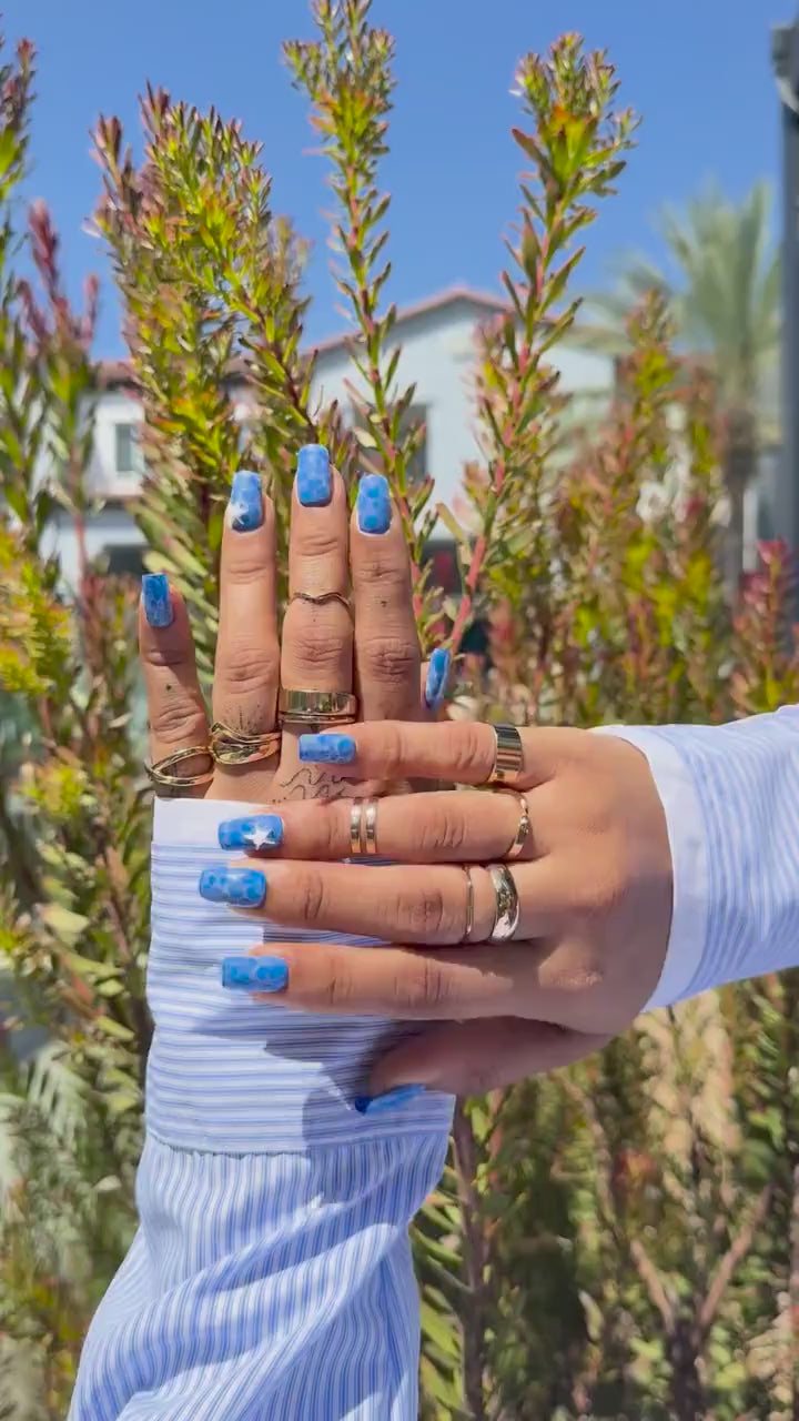 Each nail is carefully handcrafted using premium gel materials to create a translucent, glossy water effect with dimensional bubble textures. Finished in a comfortable short square shape, these reusable press-on nails are perfect for beach days, vacations, and everyday summer wear.