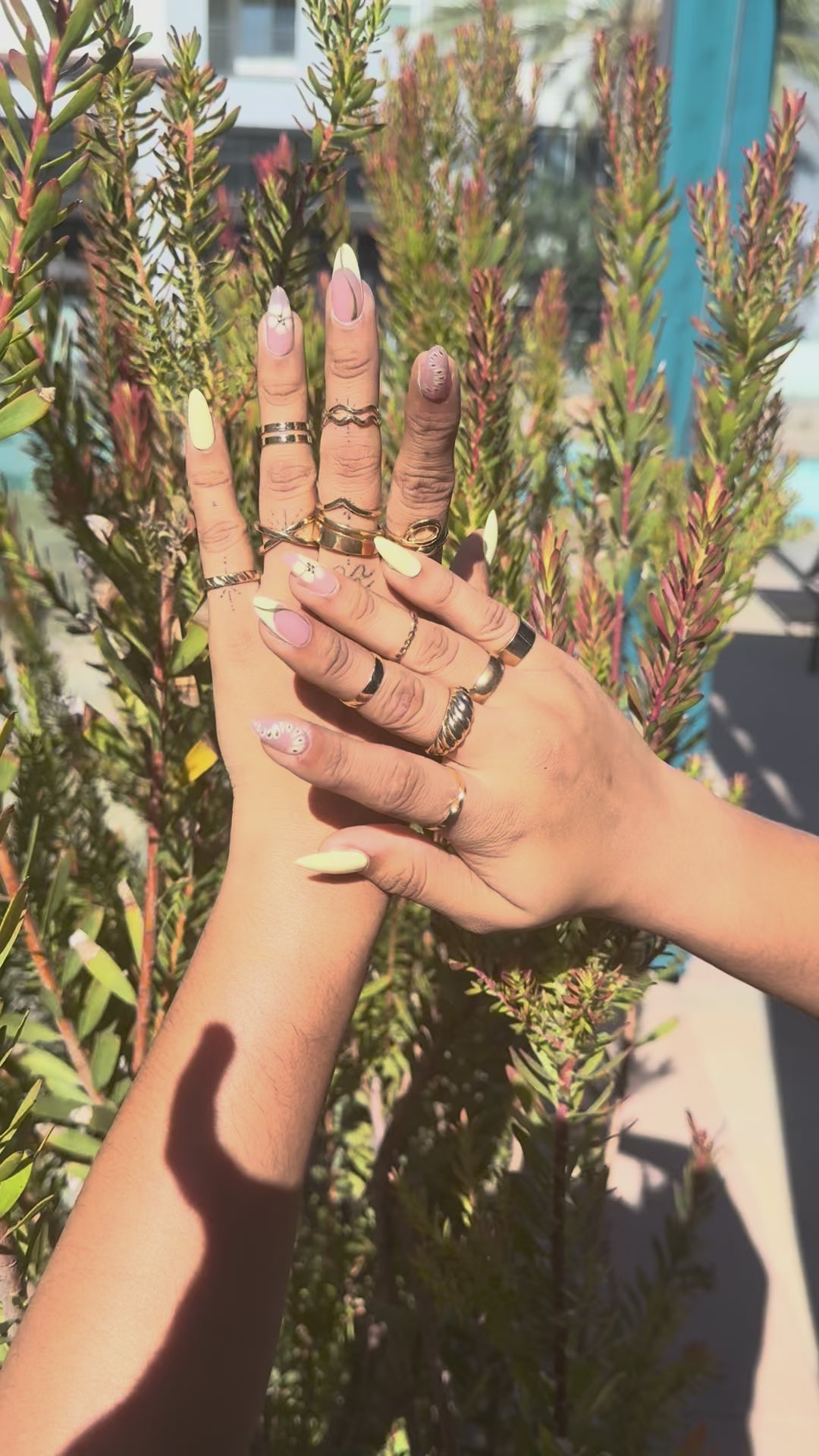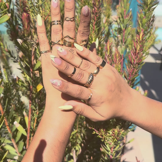 • Handmade pastel yellow & nude press-on nail art set