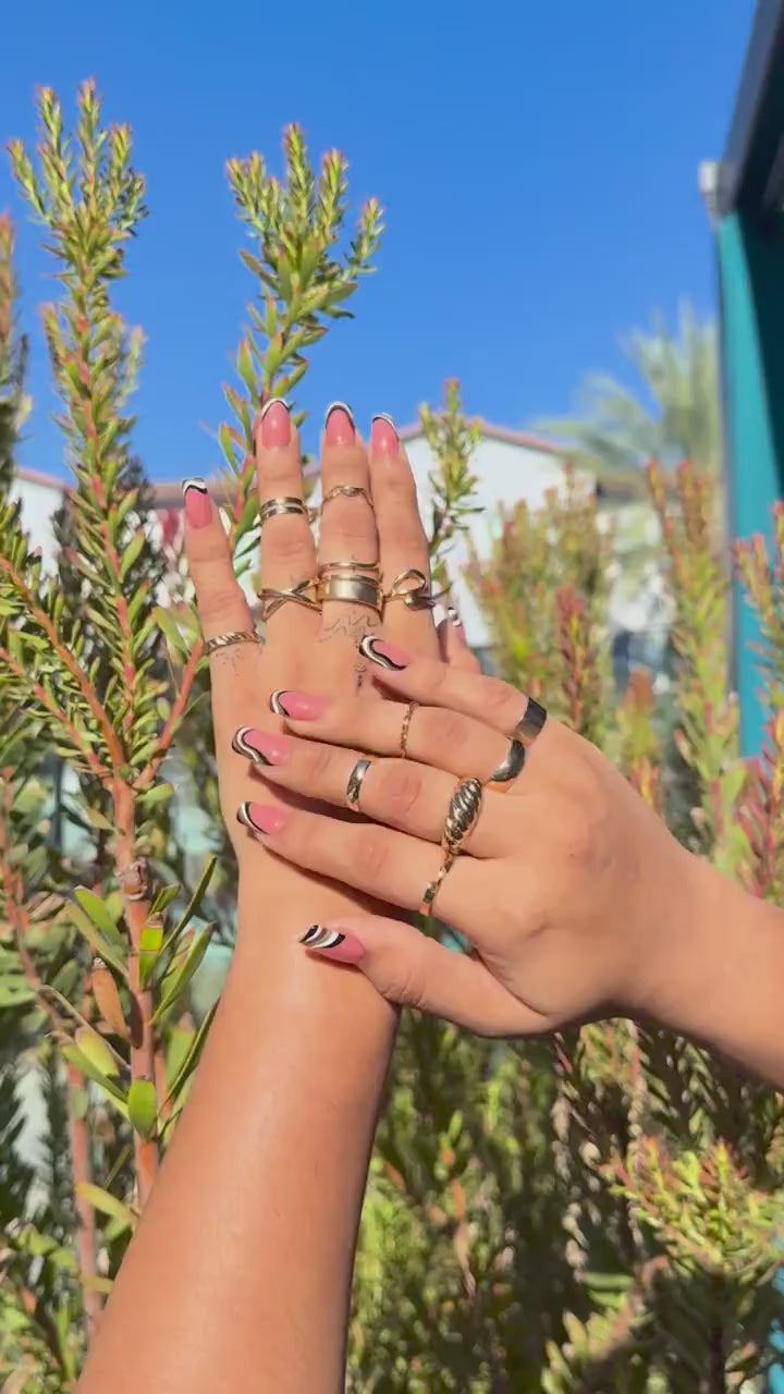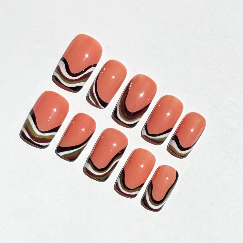 Retro Swirl Square Press On Nails |Coral Abstract Nail Set |70s Groovy Wave Nails